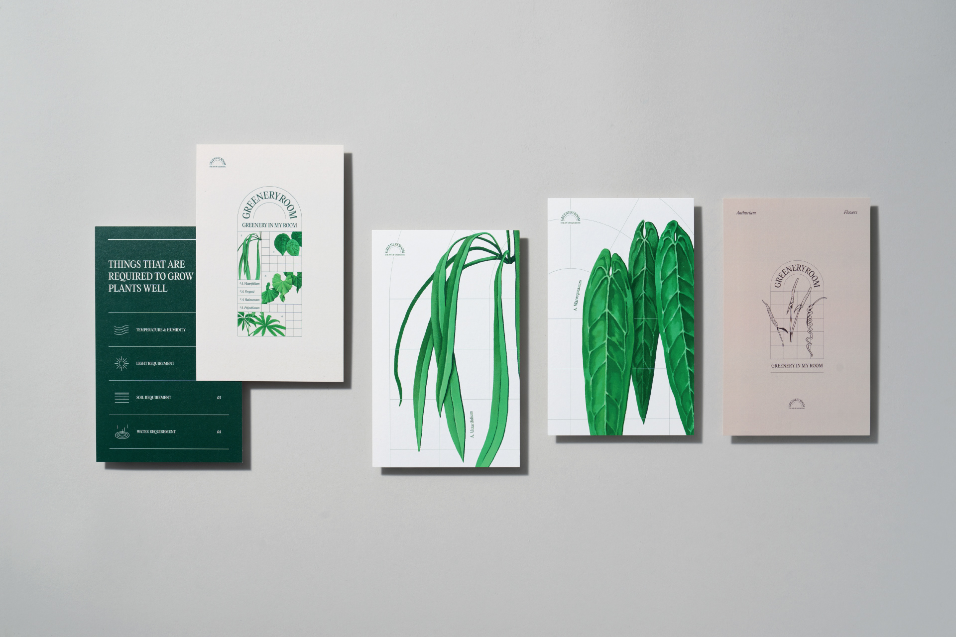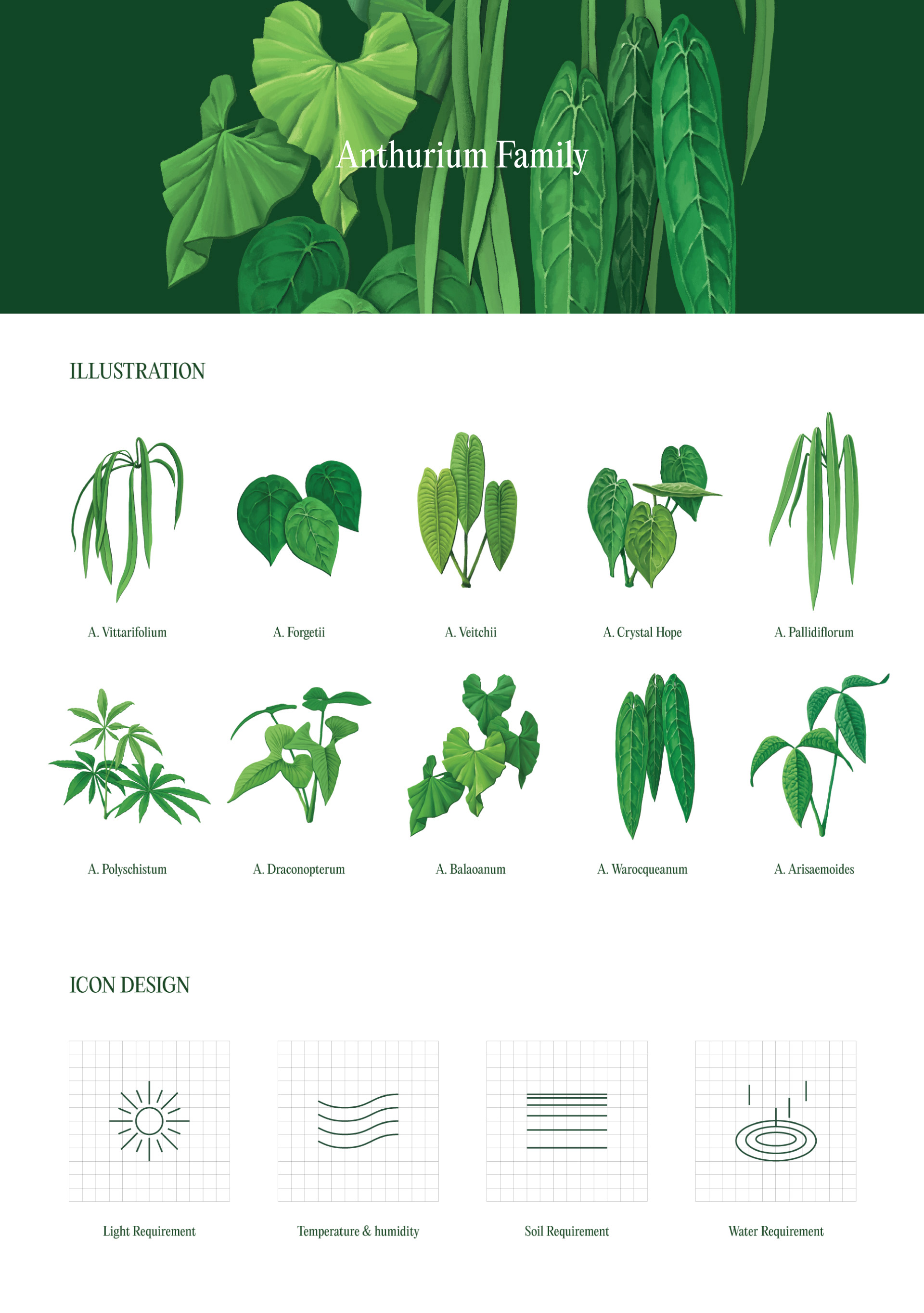 that meticulously documents the unique leaf forms and textures of various Anthurium species.